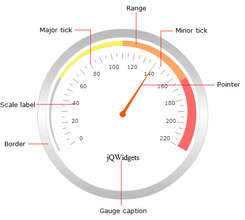 $('#gauge').jqxGauge({ ticksDistance: '15px' });